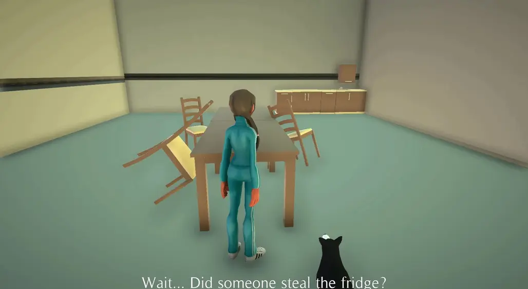 The game starts with the two protagonists entering the woods to Marina’s father’s house. This establishes Marina and Max’s trusting behaviour towards each other, as Max has to chase off crows while Marina is stricken with fear. Along the way, they come across a lone frisbee where Marina and Max play fetch while Marina reflects on her time with Max.